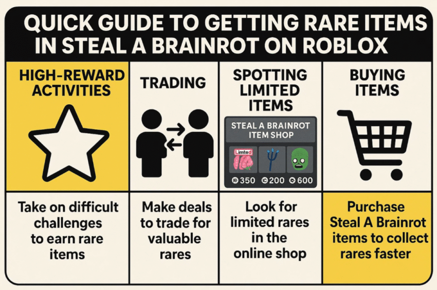 If you’ve been diving into the chaotic world of Steal A Brainrot on Roblox, you probably know that collecting rare items can make the game much more enjoyable. From exclusive outfits to unique tools, rare items aren’t just cosmetic—they can give you an edge in gameplay and show off your dedication. Here’s a guide to help you get them quickly and efficiently.
